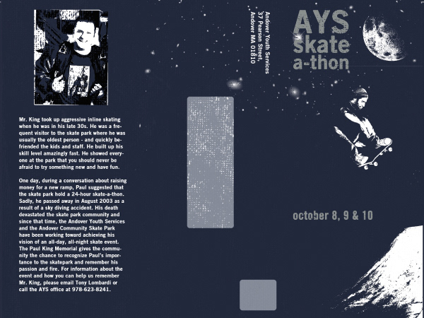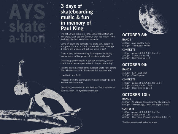 Multi-piece project for the Andover Youth Services annual skate-a-thon fundraiser.