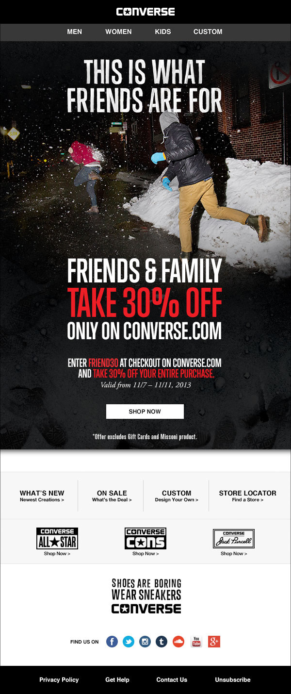 Email for Converse friends and family promotion