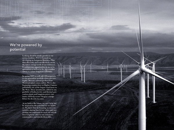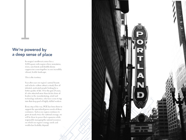 Annual report redesign for Portland General Electric Company based in Portland Oregon.