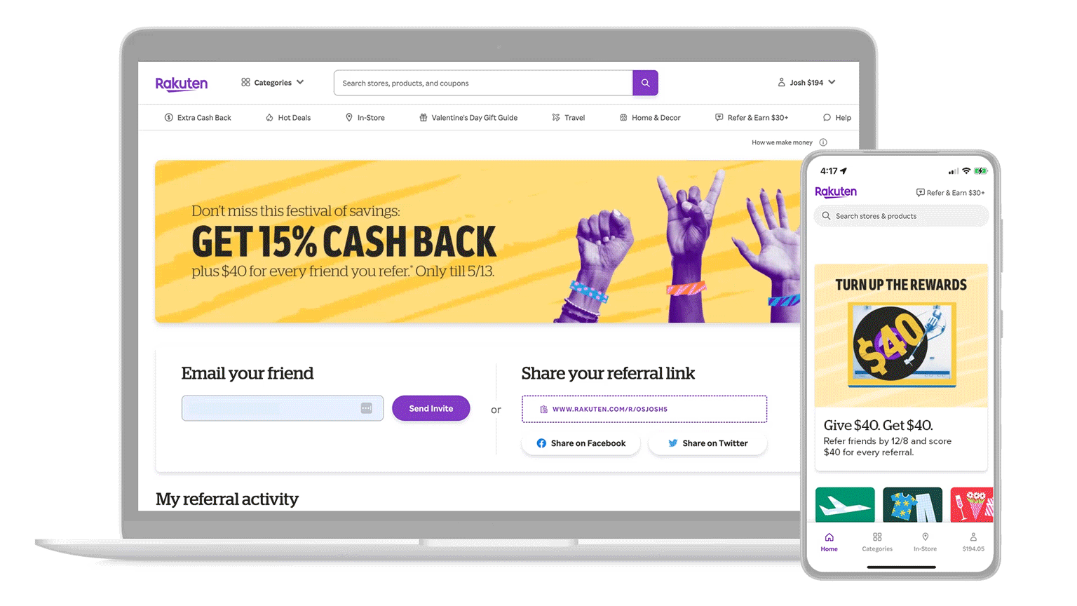 Selection of assets in support of Rakuten's Refer a Friend program for the annual "Big Give Week" shopping event.